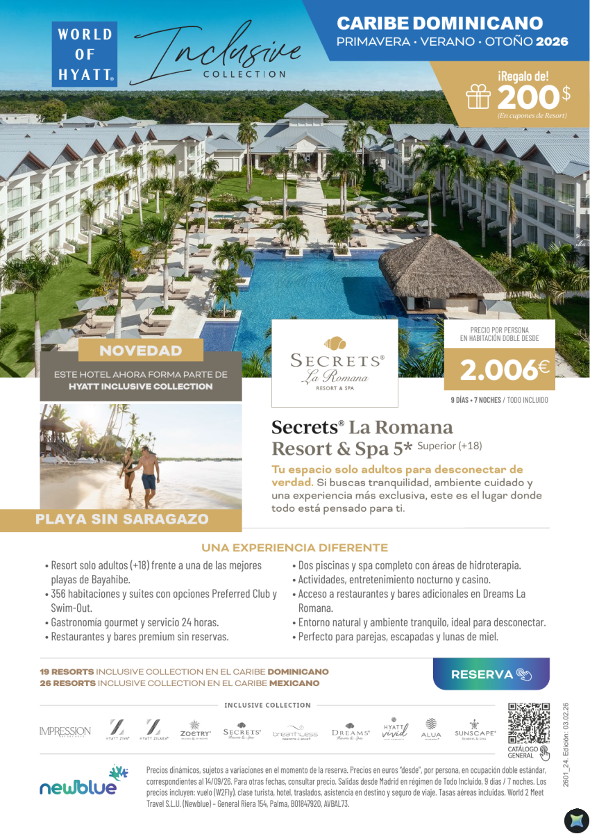 Nuevo y exclusivo Secrets La Romana en una playa Sin Sargazo. Bayahíbe. Sept desde 2.006€ 9D/7N T.I