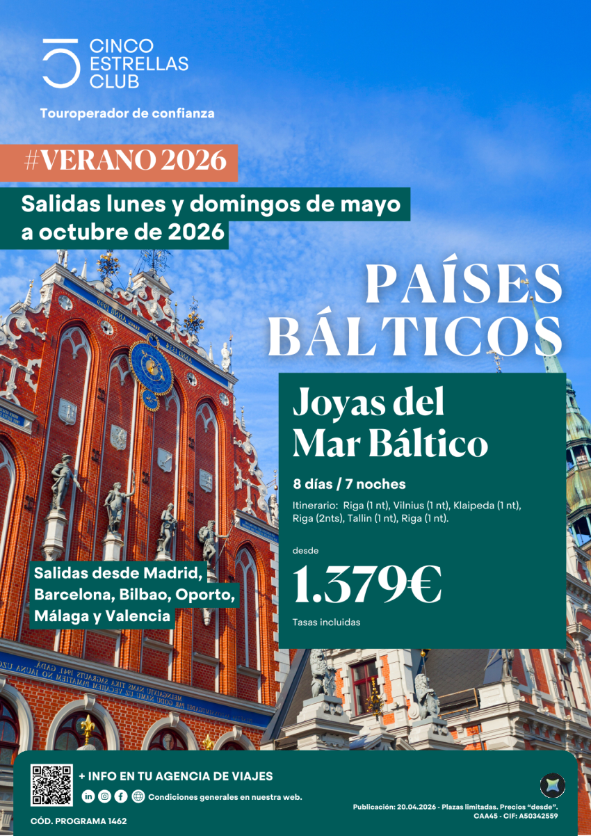 Nuevo| Joyas del Mar Báltico 8ds/7ns dsd 1.379€ dsd Mad, Bcn,Bio,Opo,Agp, Vlc-sal.lunes y domingos d mayo.oct.